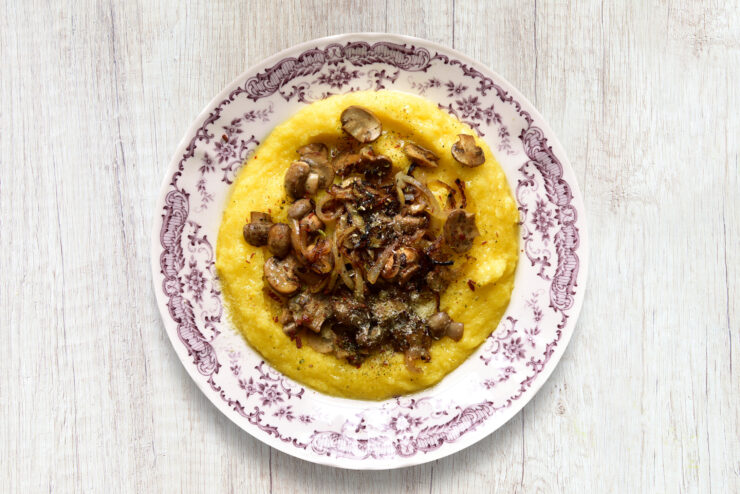 Creamy polenta baked with wild mushrooms and fontina cheese.